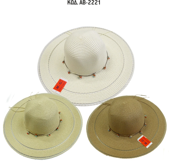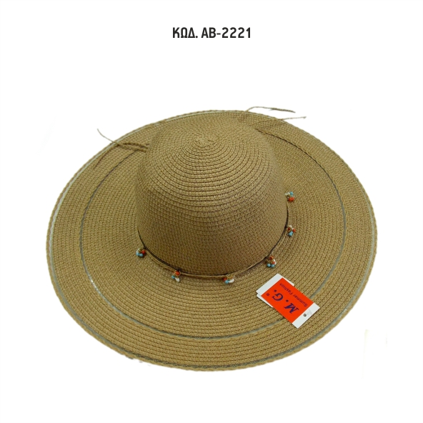Γυναικείο Ψάθινο Καπέλο Με Πλατύ Γείσο MG Κωδ. ΑΒ-2221.