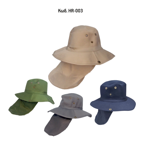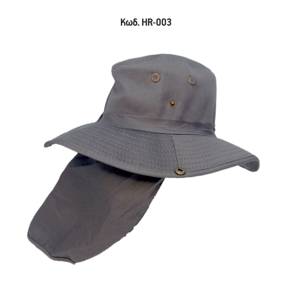 Με φαρδύ γείσο στο πίσω μέρος που προστατεύει τον αυχένα και τα αυτιά από τον ήλιο