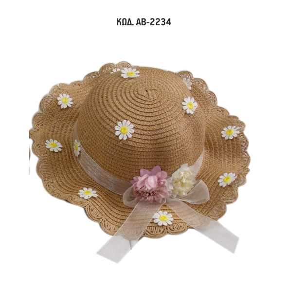 Καπέλο Ψάθινο Για Κορίτσι Με Λουλούδια MG Κωδ. AB-2234.
