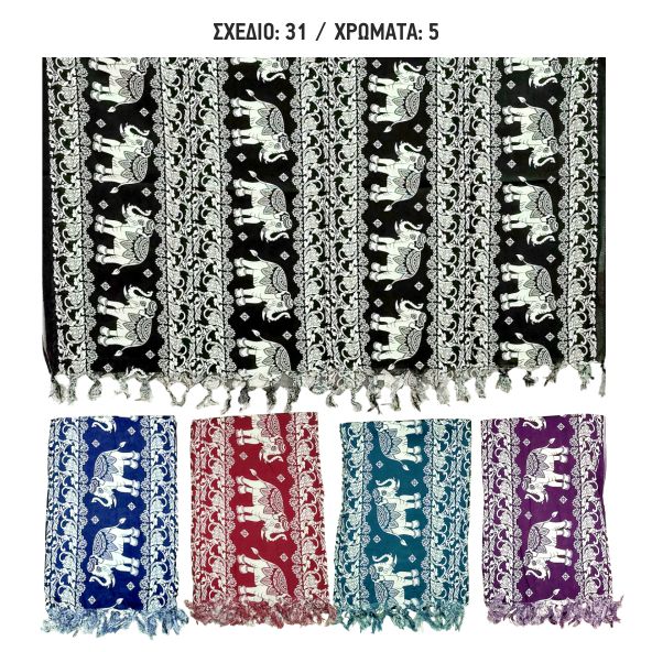 Παρεό Με Σχέδια Διαστάσεις 170cm x 120cm MG Συσκ. 10 Tεμ Kωδ. 2307-31
