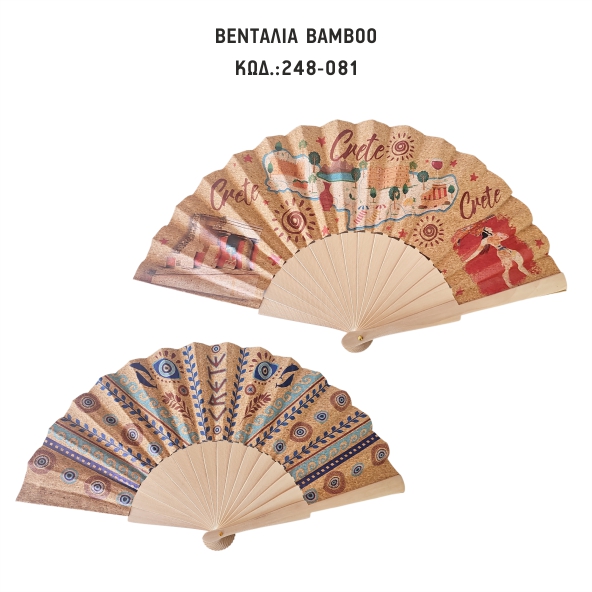 Βεντάλια Ξύλινη Φελλός Με Σχέδιο Κρήτη Σε 2 Χρώματα Συσκ. 12 τεμ. Κωδ.248-081