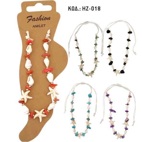 Βραχιόλια ποδιού Με Σχέδια Και Αυξομείωση Συσκευασία 12Τεμαχίων Κωδ. HZ-018